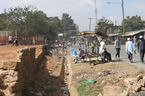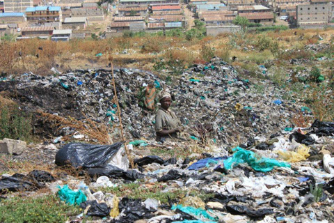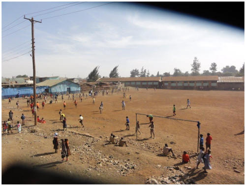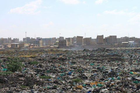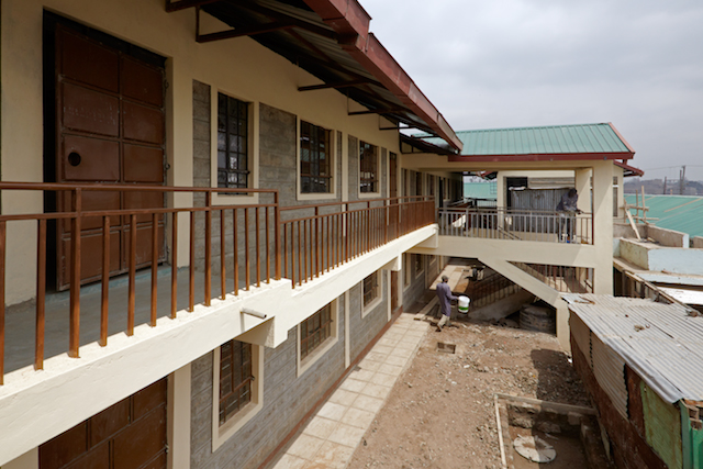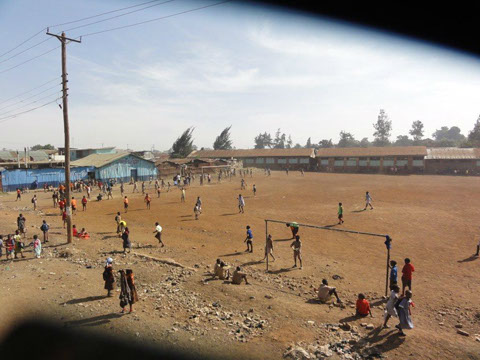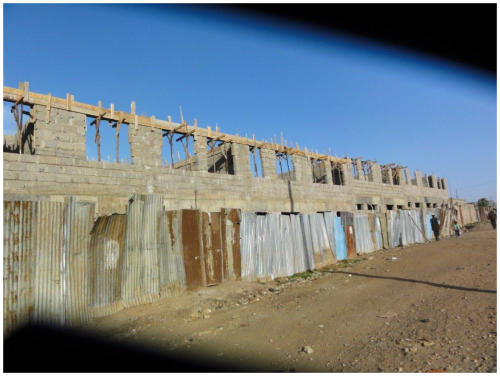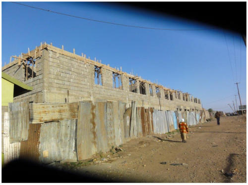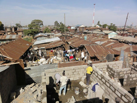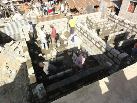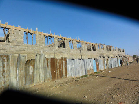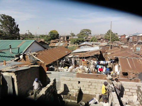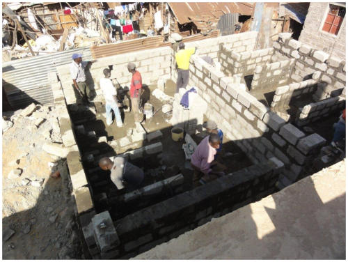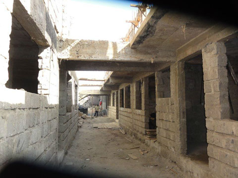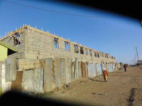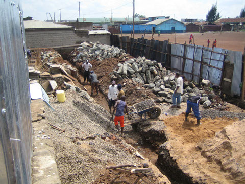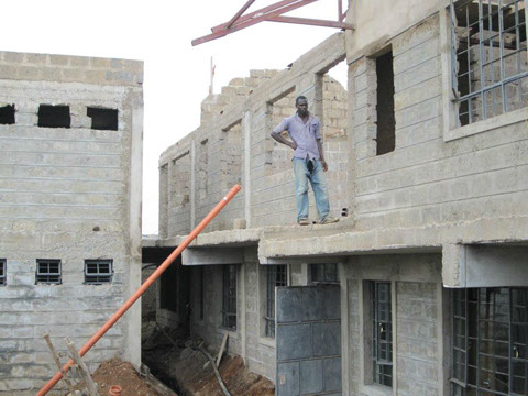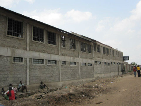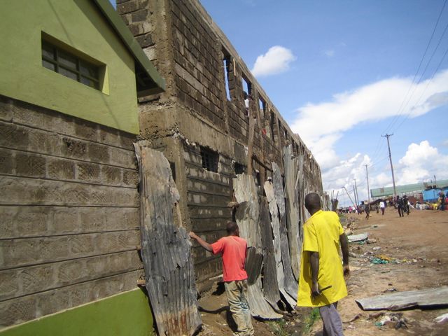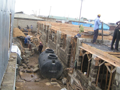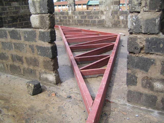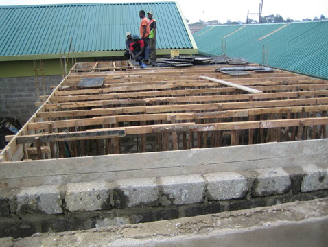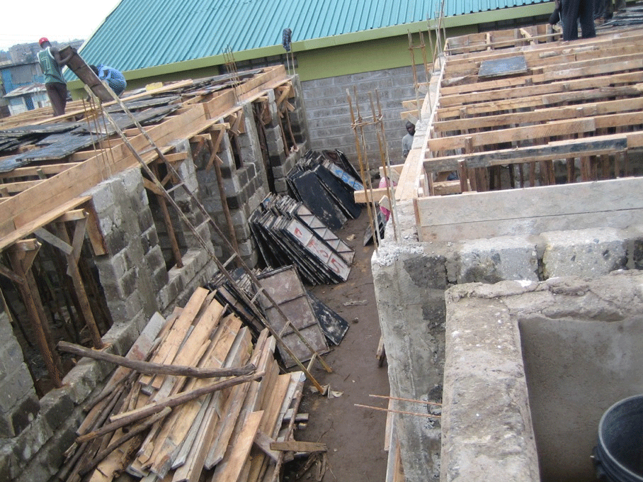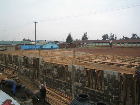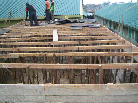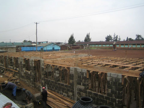 <>4 - 7Mai 2012Der Dachstuhl im zweiten Stock der Schule werden fertig.Die Müllhalde Dandora liegt mitten in den Slums, mitten in der Millionenstadt Nairobi.